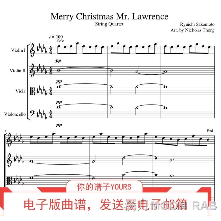 Merry Christmas Mr Lawrence String Quartet Arrangement Youtube. Lawrence by Ryuichi Sakamoto arranged by Nicholaas for Violin Cello Viola String Quartet. Merry Christmas Mr Lawrence Ryuichi Sakamoto Free Piano Sheet. Soundtrack of the movie Merry Christmas Mr. Mallet Ensemble Merry Christmas Mr.